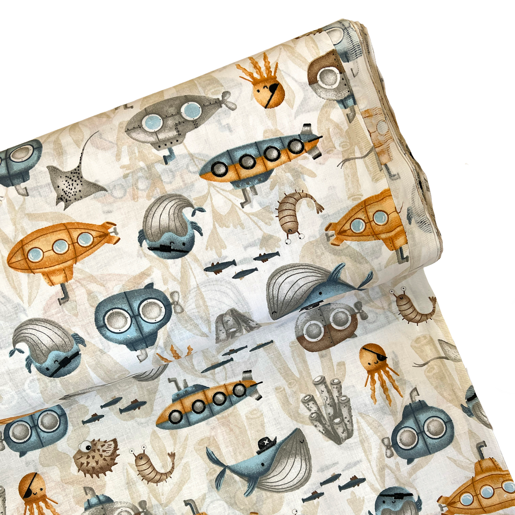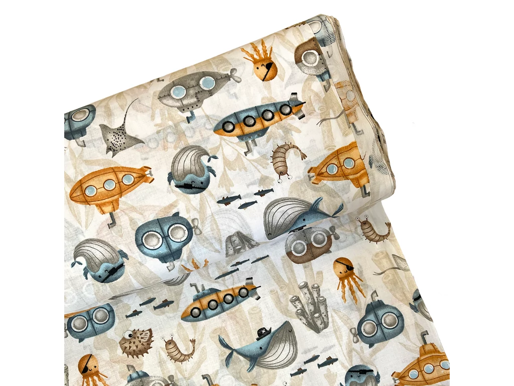 Gyerek mintás pamutvásznak - tengeralattjáró