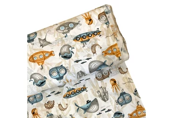 Gyerek mintás pamutvásznak - tengeralattjáró